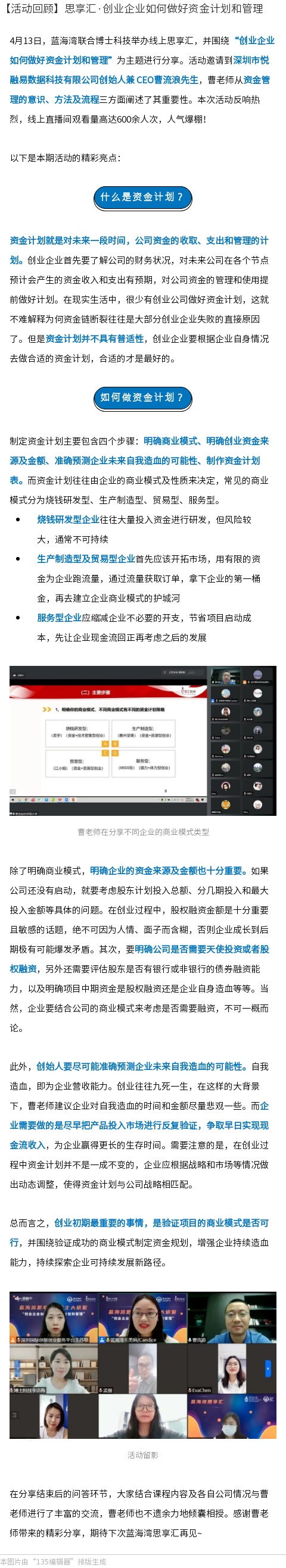 思享汇·创业企业如何做好资金计划和管理
