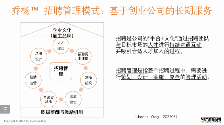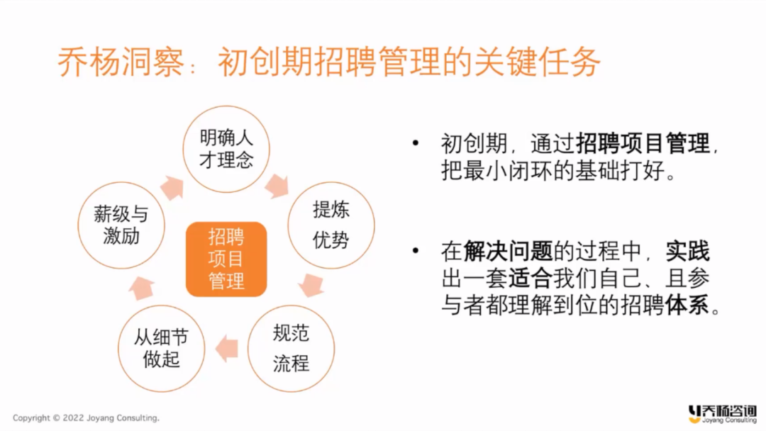 3月31日,蓝海湾2022年第一期思享汇顺利举行。本期思享汇邀请到了乔杨文化传播、乔杨咨询创始人Joanna杨琼娜女士,从招聘管理方法论切入,带领大家分析公司在初创期和增长期的关键任务分别是什么。