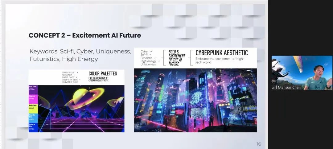 许多科技创业者做品牌设计时都存在以下困惑:在同类型品牌设计风格都相似的情况下,自身品牌如何突出呢?陈教授建议的是,不妨加入一点设计者的“个性”。例如在未来科技主题中,加入一些不拘泥于传统的后现代主义元素,就会产生独特的赛博朋克风格。通过两种风格的碰撞,既能做出品牌的差异化,也能让品牌具有创业者的独特属性,这样的差异化能让品牌脱颖而出。
