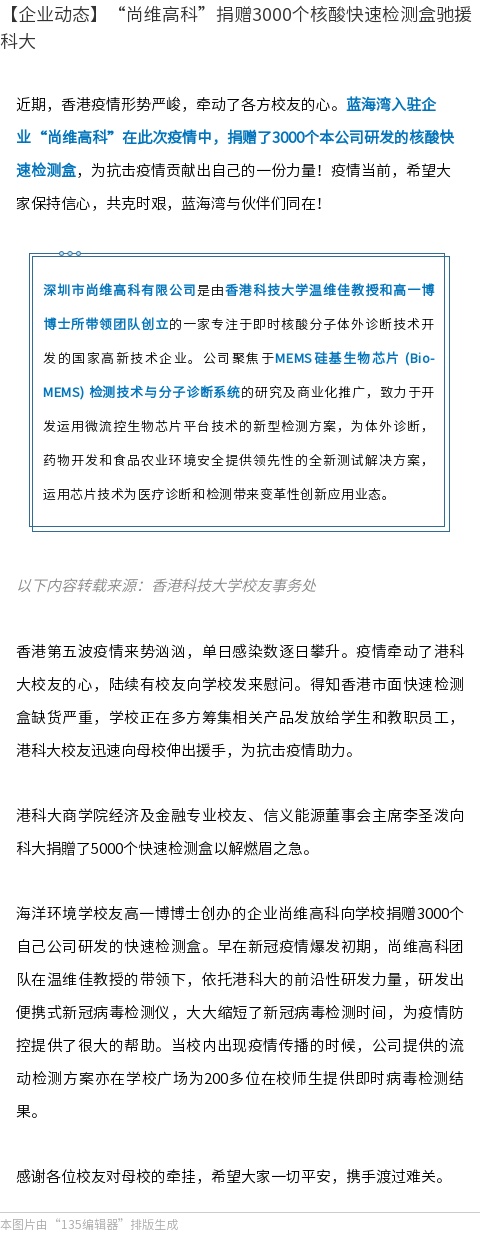 “尚维高科”捐赠3000个核酸快速检测盒驰援科大