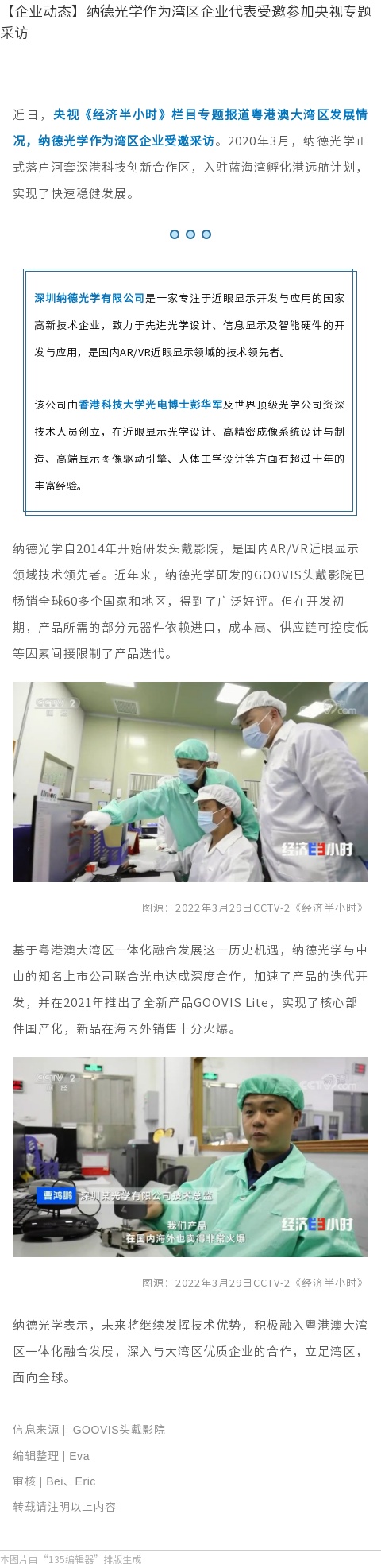 纳德光学作为湾区企业代表受邀参加央视专题采访