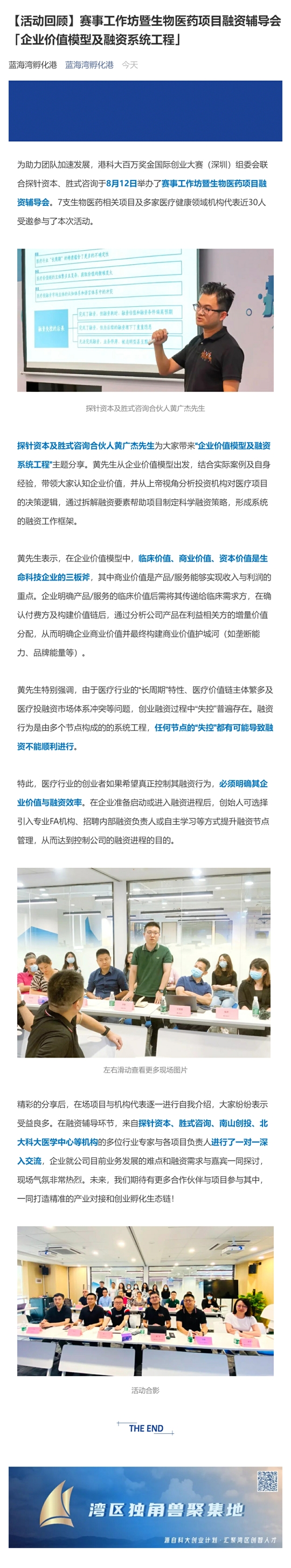 赛事工作坊暨生物医药项目融资辅导会「企业价值模型及融资系统工程」