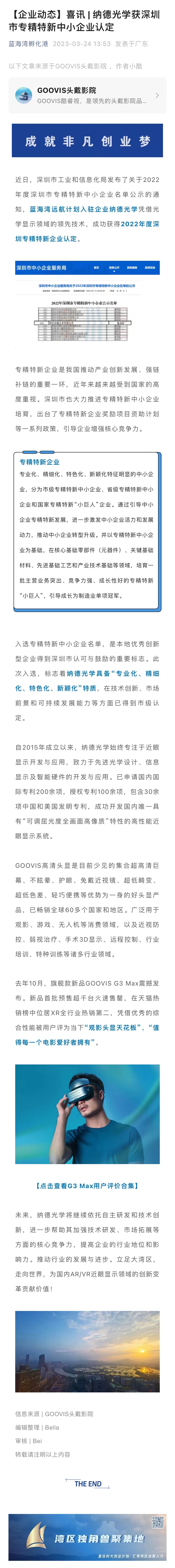 蓝海湾入驻企业纳德光学获中国专利界最高荣誉—中国专利奖