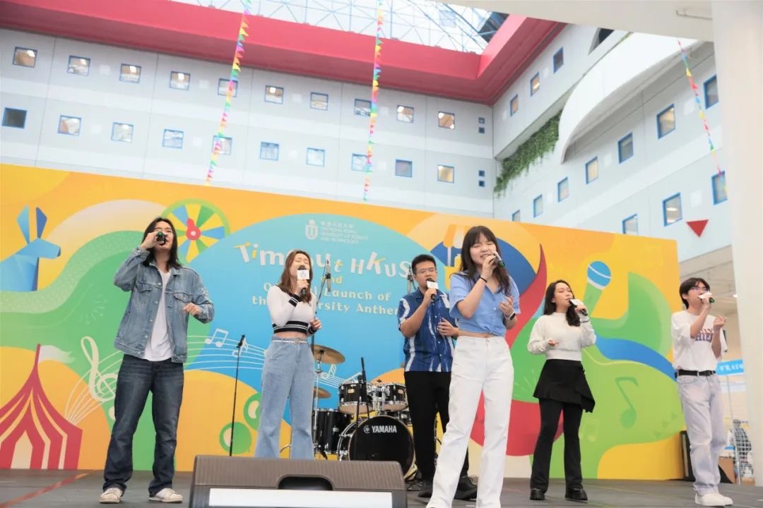 在港科大校歌正式发布后,港科大管理层与数百名教职员及学生在大会的领唱下,一同进行大合唱