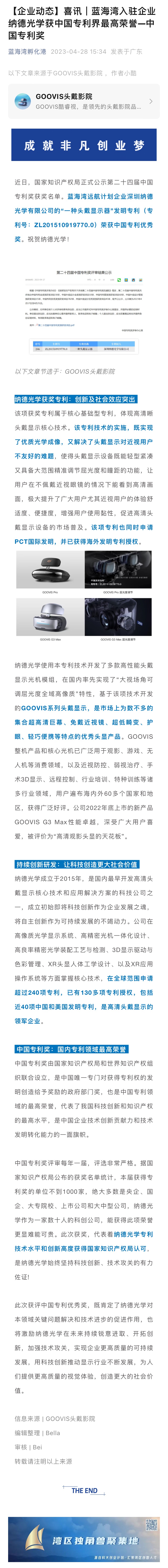 蓝海湾入驻企业纳德光学获中国专利界最高荣誉—中国专利奖