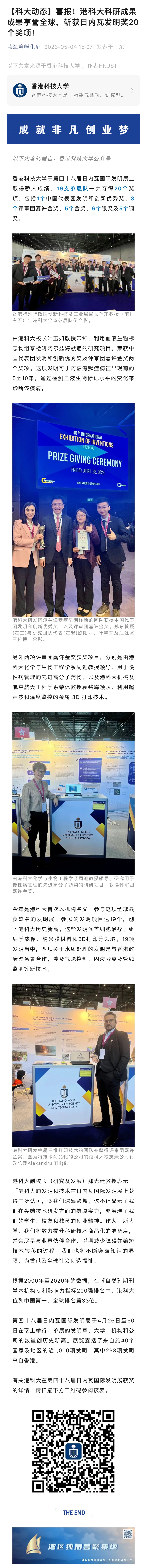 港科大科研成果成果享誉全球,斩获日内瓦发明奖20个奖项!
