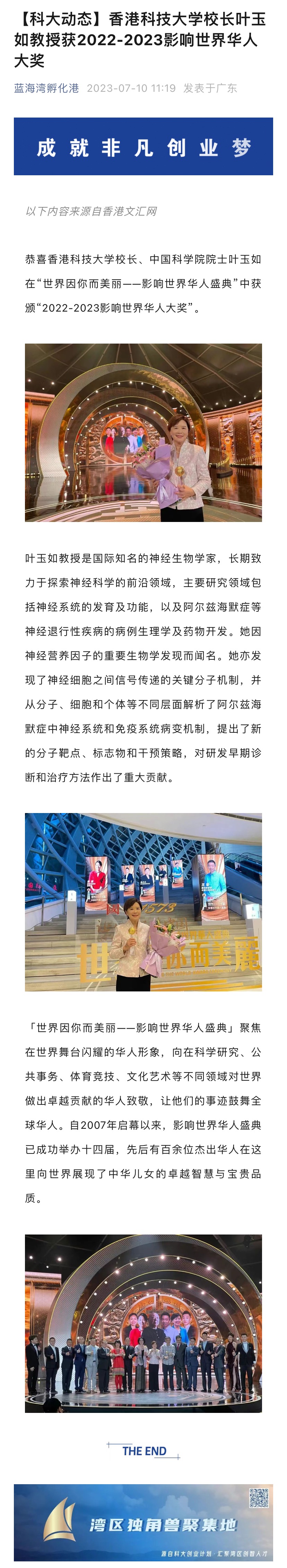 香港科技大学校长叶玉如教授获2022-2023影响世界华人大奖