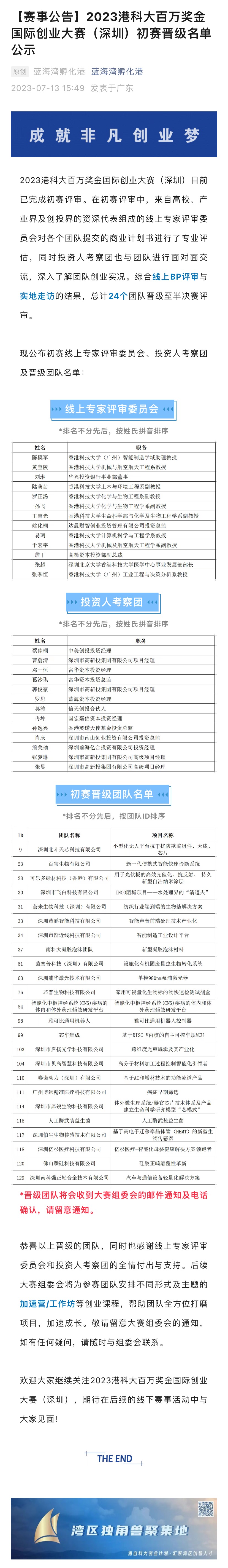2023港科大百万奖金国际创业大赛(深圳)初赛晋级名单公示
