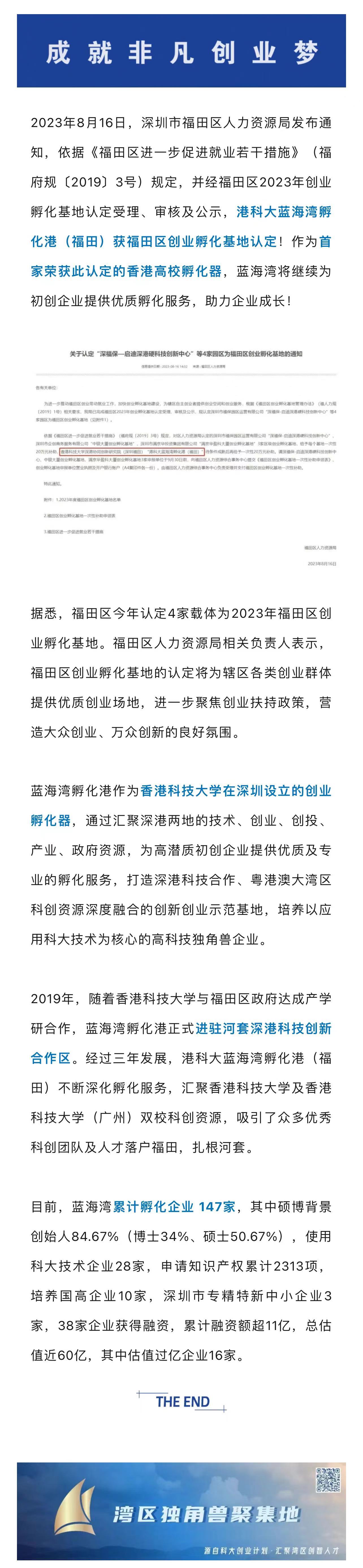 港科大蓝海湾孵化港(福田)获福田区创业孵化基地认定!