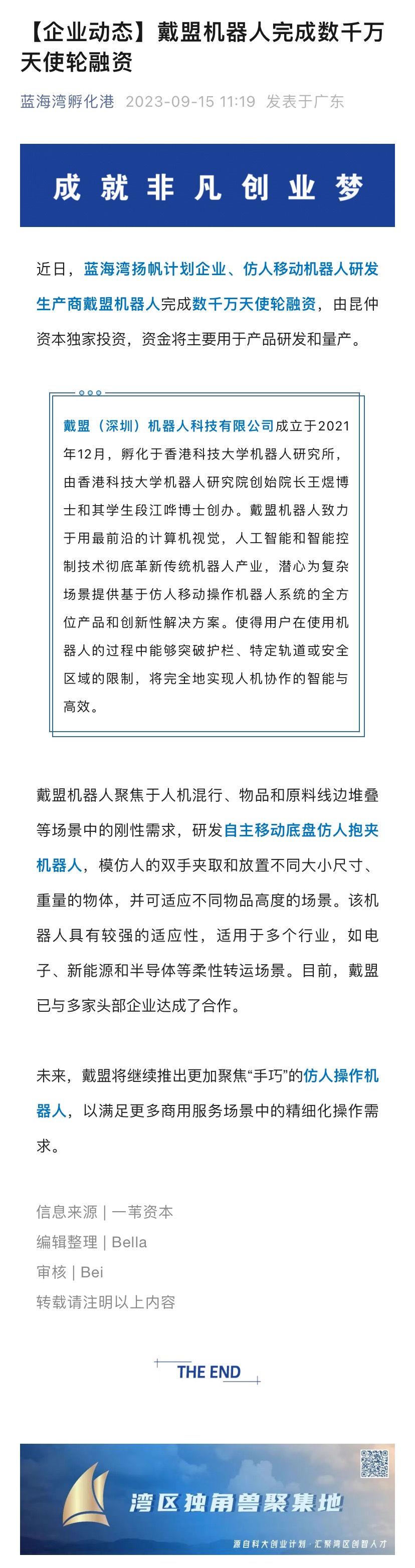戴盟机器人完成数千万天使轮融资