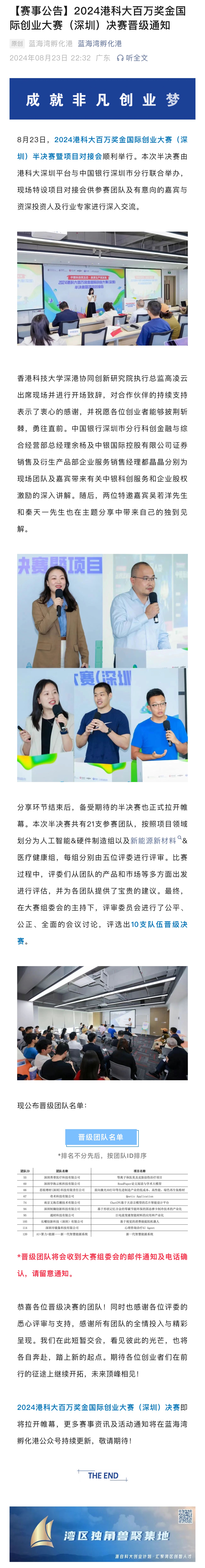 2024港科大百万奖金国际创业大赛(深圳)初赛晋级名单公示