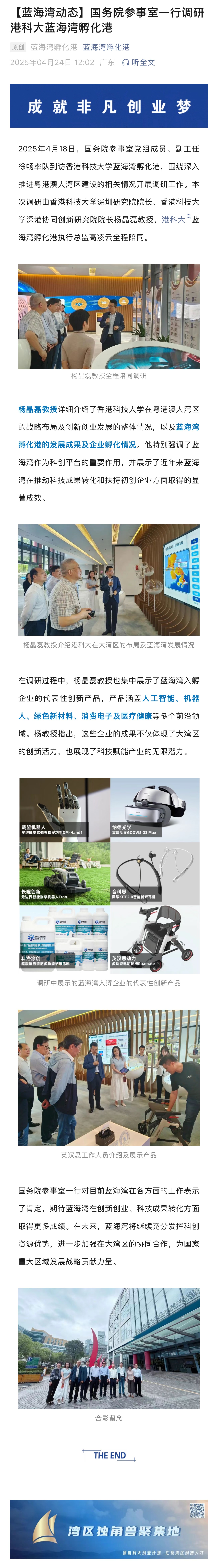 国务院参事室一行调研港科大蓝海湾孵化港