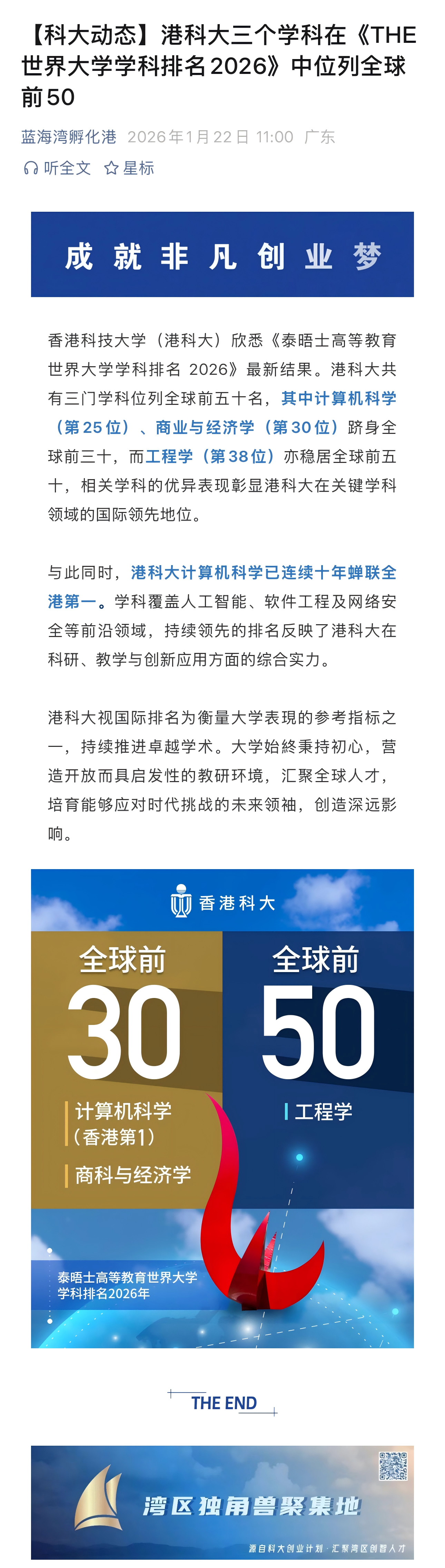 港科大三个学科在《THE世界大学学科排名2026》中位列全球前50
