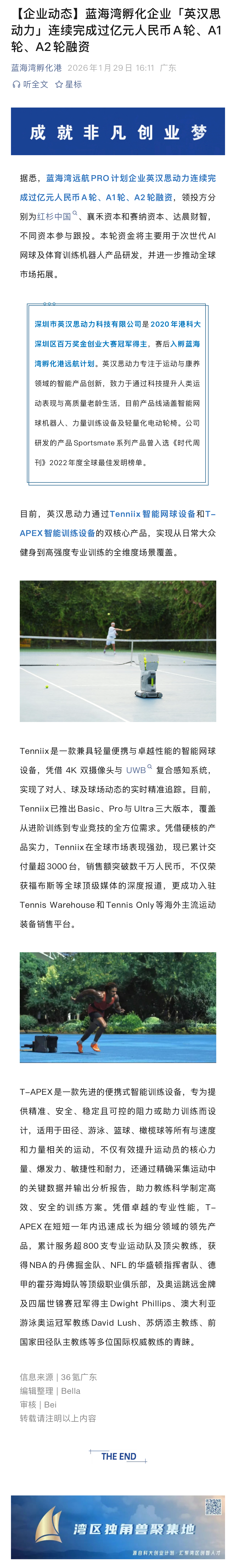 蓝海湾孵化企业「英汉思动力」连续完成过亿元人民币A轮、A1轮、A2轮融资
