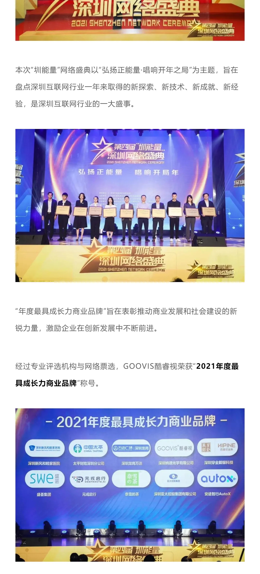 圳能量!GOOVIS酷睿视喜获“最具成长力商业品牌”